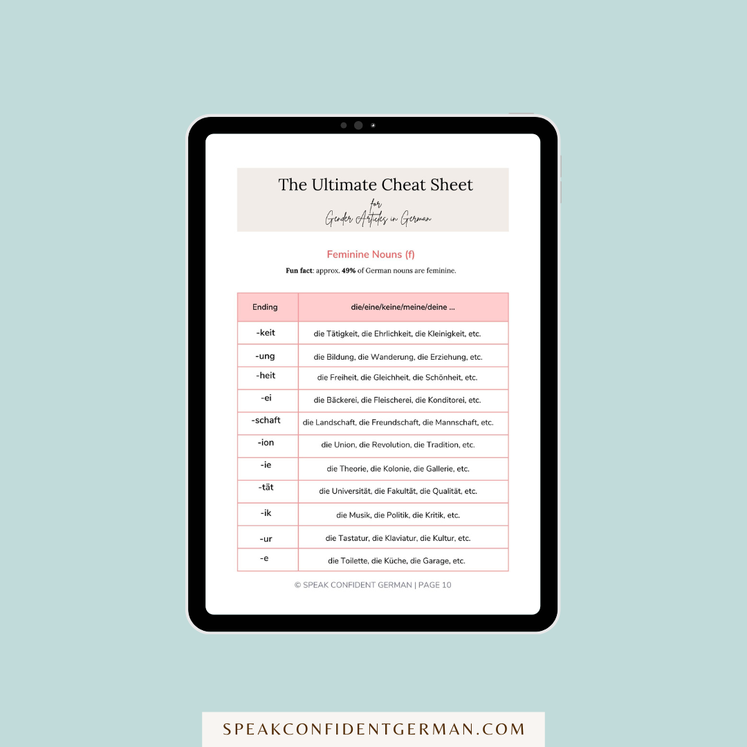 This worksheet includes mnemonic and association techniques, and a cheat sheet you can use to learn German gender articles.
